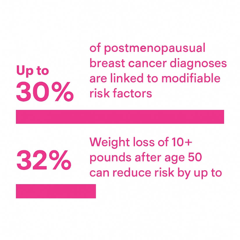 According to the National Cancer Institute, excess weight and obesity after menopause increases a woman’s risk of breast cancer and can worsen outcomes after a diagnosis at any age. Data from ACS links rising rates of hormone receptor (HR)–positive breast cancer in postmenopausal women to increases in obesity.