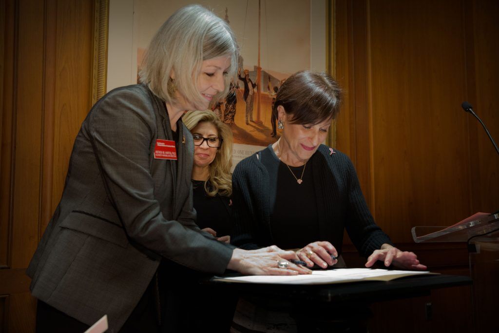 Myra Biblowit and Bari Seiden-Young, ELC Vice President of Global Corporate Communications, Citizenship & Sustainability, joined David J. Skorton, Secretary of the Smithsonian Institution, Anthea Hartig, NMAH Director, and Abbe Raven, BCRF Board member and NMAH Board Chair, for a poignant ceremony signing the artifacts over to the Smithsonian’s permanent collection.