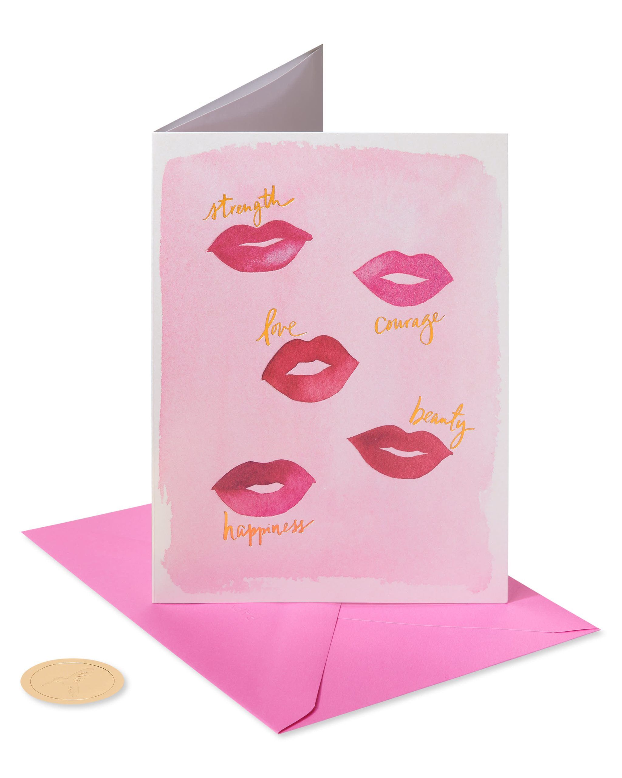 Send inspiring words from lovely lips with this unique premium card from Papyrus. Its design features sets of hand-lettered, gold-foiled watercolor lips paired with words like strength, courage, love, beauty, and happiness. For every limited-edition BCRF card sold, Papyrus commits 25 cents to BCRF.