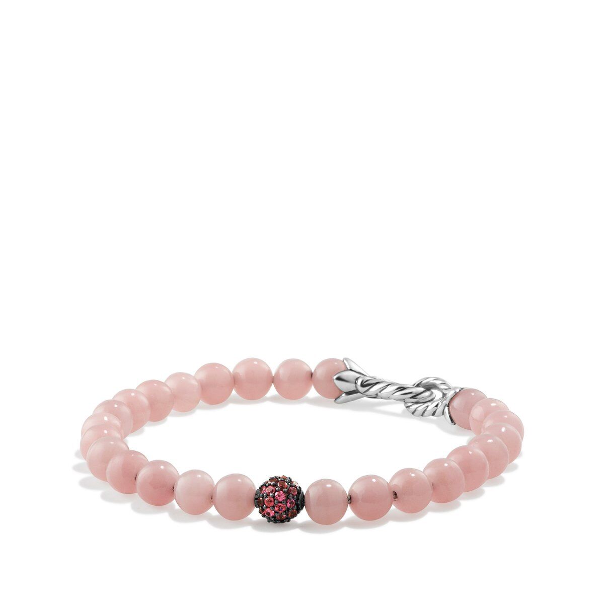 The Spiritual Beads bracelet from David Yurman is beautifully designed in two options. One with Pave Bead in Guava Quartz and Rhodalite Garnet and another in Guava Quartz. Now in a more delicate scale with an exclusive new sterling silver clasp, the smooth guava quartz beads are paired with sparkling rhodalite garnet. As a colorful accent, this blush-hued piece is perfect for stacking with other bracelets.