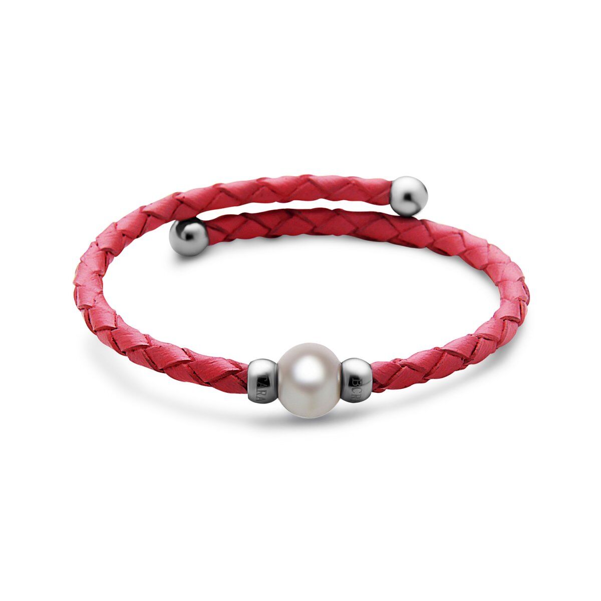 Who doesn’t love to stack? This natural color 11x12mm white freshwater pearl braided pink faux leather and sterling silver bracelet is perfect for wearing alone or stacking. Made with a flexible steel wire, this bracelet fits most. TARA is inscribed on the silver on one side of the pearl and BCRF on the other side.