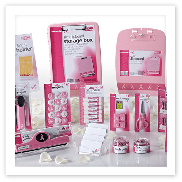 Organize your workspace with Officemate’s complete line of BCRF office supplies including clipboards, staplers, various clips and magnets, scissors, sign holders, and desk accessories. With each purchase of Officemate’s Pink Themed Office Supplies, $0.10-$0.50 per purchase will benefit BCRF.