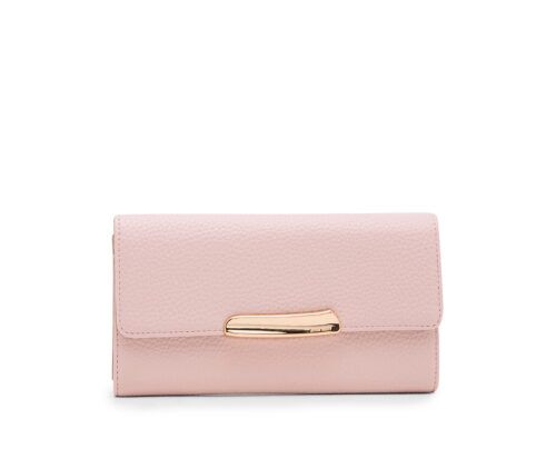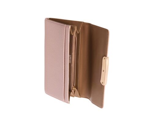 A classic and spacious wallet that is designed to keep everything in place. Features a sculpted plaque hardware, ample compartments for cash, credit cards and receipts. Exterior: PVC, H: 4.3″” L: 7.5″” D: 1.25″”