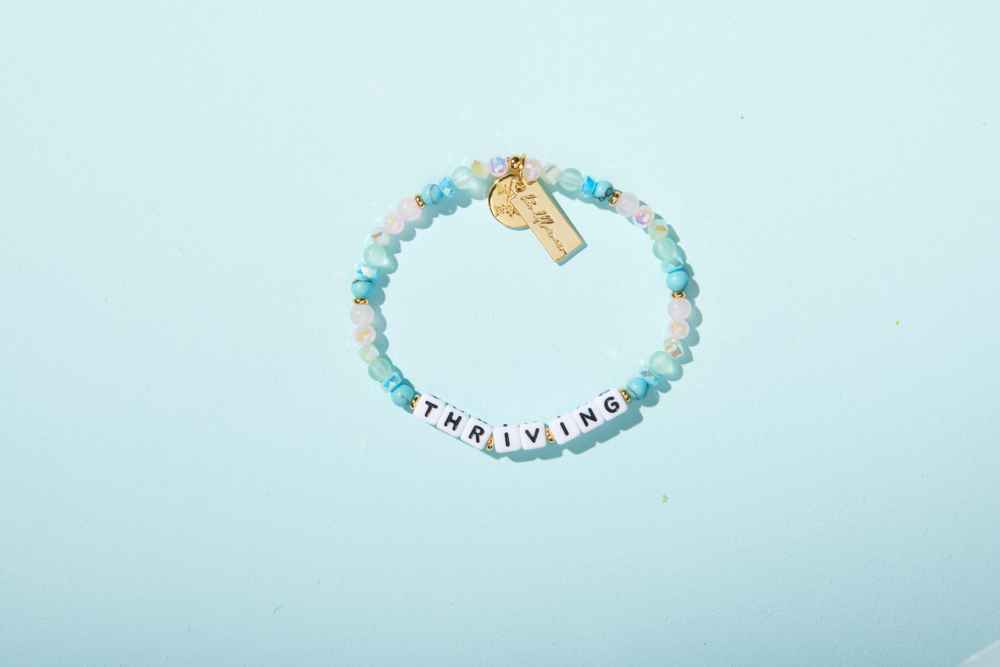 Inspired by Katie Thurston’s journey with stage IV metastatic breast cancer, Thriving is more than a bracelet. It’s a representation of resilience and strength. The “IV” in Thriving  honors the stage IV community. Little Words Project will donate 25% of the purchase price of each of Katie’s bracelets to BCRF September 19 – October 31, 2025, exclusively supporting metastatic breast cancer research. Available online and in Little Words Project retail stores.