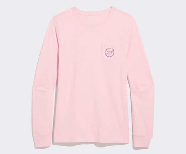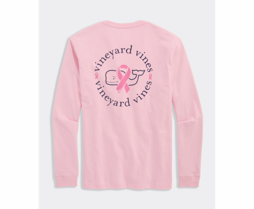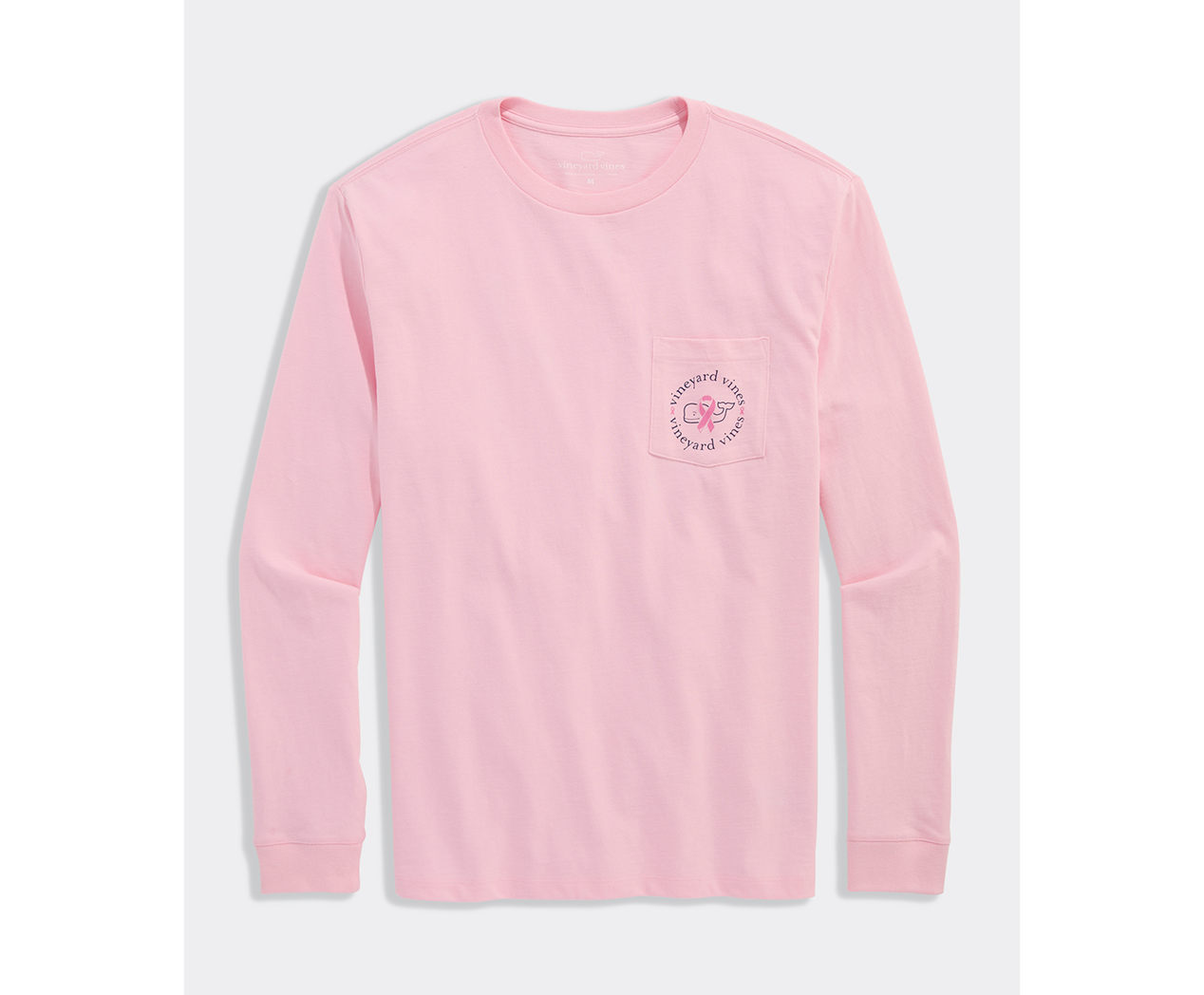 Breast Cancer Awareness Ribbon Whale Long-Sleeve Pocket Tee