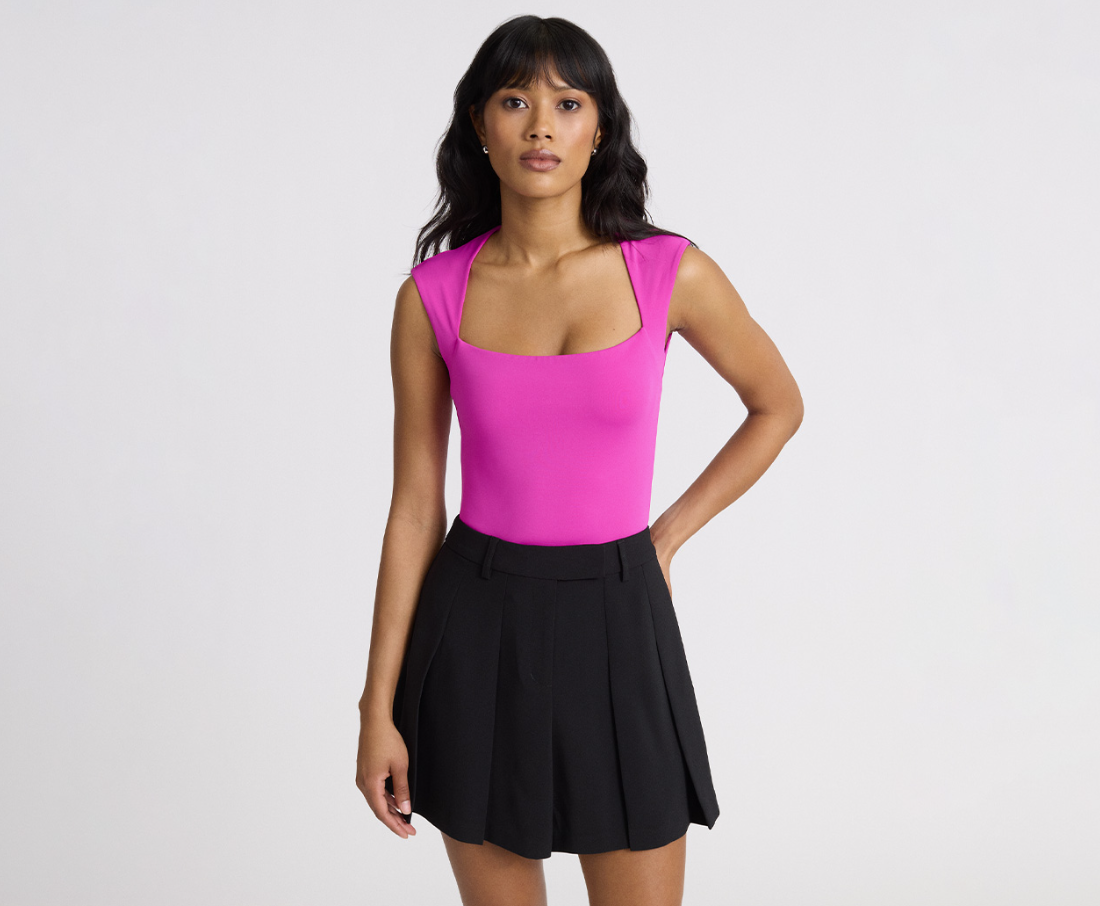 Created with a flattering square neckline and cap sleeves, this bodysuit is made to smooth, sculpt, and define your figure thanks to the double layer of compact matte fabric.