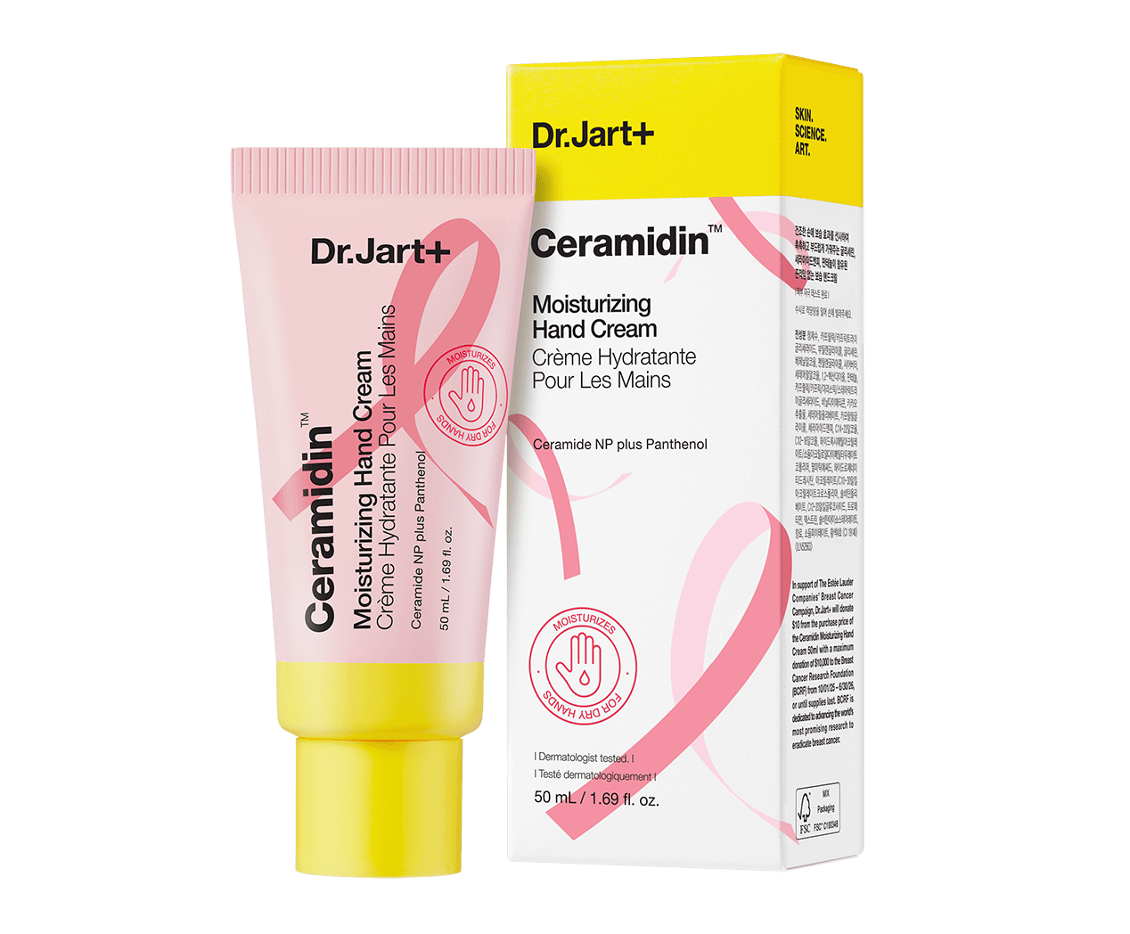 This moisture-rich hand cream with Glycerin, Ceramide NP and Panthenol immediately softens skin and supports a good cause. Dermatologist tested. When you purchase the pink ribbon edition of Ceramidin™ Moisturizing Hand Cream, $10 of the purchase price will be donated to BCRF.
