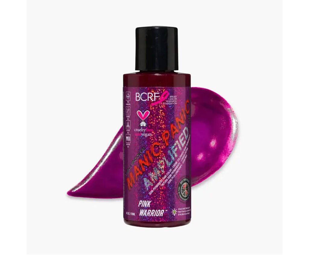 Pink Warrior® Amplified™ takes the cool-toned, electric pink you love from the iconic Manic Panic® Classic High Voltage® line and supercharges it with 30% more pigment for a darker, richer, and longer-lasting finish. This vibrant, semi-permanent hair dye delivers intense, damage-free color that holds its bold tone for up to 30% longer than our Classic formula.