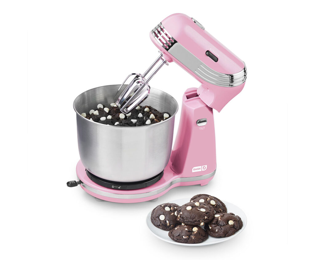 Be prepared for all your everyday baking and cooking projects with the Dash Everyday Stand Mixer. Six preset speeds range from gentle mixing to high-speed whipping, and Dough Hooks are included for mess-free kneading. A tilting motor head makes adding ingredients or removing the stainless steel, 3 quart Mixing Bowl simple. Easy to clean and with a stylish retro design, this is the ideal mixer for everyday cooking.
