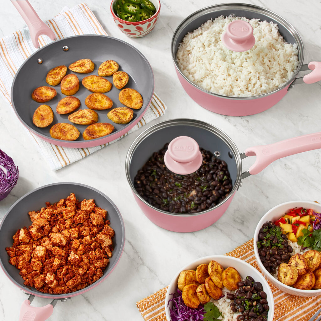 Upgrade your kitchen cookware and help prevent waste with the Dash Dream Green Recycled Aluminum 15-Piece Cookware Set! These pots and pans are constructed with 100% recycled aluminum bodies, and 52% of the total product is made out of recycled materials, which helps minimize waste. Each piece is induction compatible and features a thick aluminum construction that maximizes heat distribution and retention, as well as our CleanCoating™ Safe Ceramic Nonstick coating. Stainless steel handles are wrapped in silicone and designed with comfort in mind, and the set includes four bamboo utensils that are easy to use with the cookware. The set is lightweight, durable, easy to clean and includes everything your kitchen needs!