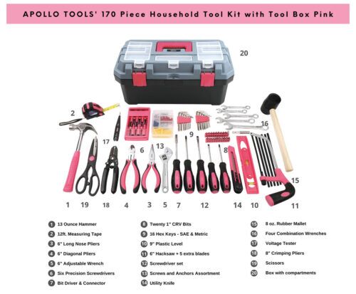 This handy tool kit contains 170 of the most-needed tools and accessories for all your DIY and home projects. For wood and metal crafting, home decorating, hanging pictures and shelves, assembling furniture, and most garage and home repairs.