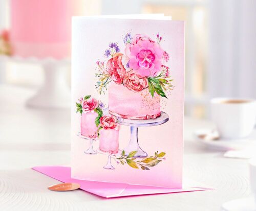 Let her know how important she is to you with this beautiful birthday card from Papyrus. Featuring a decorative cake and floral design in a cheerful pink motif with foil, glitter, and fabric and sequin embellishments, the artwork looks good enough to eat! The message is warm and complimentary, and the matching pink envelope with floral pattern insert adds an extra bit of fancy to help celebrate her day in style. Gold foil seal included.
