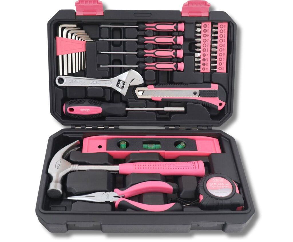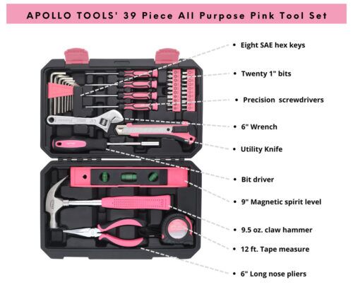 This upgraded tool set is a fresh look at our best-selling pink 39-piece general tool kit. We kept the features that made that set a best seller, with over 2 million sold and added the most requested features and tools. It contains the most useful tools for basic DIY household maintenance and repairs.
