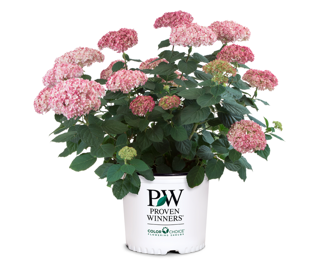 Invincibelle® Spirit II has flowers that start out deep, soft pink and age to jade green. Best of all, whenever an Invincibelle® Spirit II hydrangea is sold, $1 is donated to BCRF. Through sales of this plant, over $1 million dollars has been raised to help with finding a cure for breast cancer.