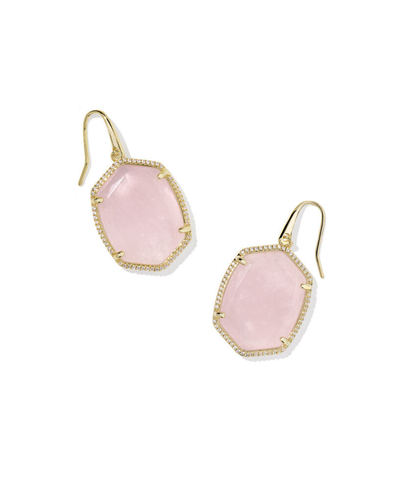 Your favorite drop earrings just got more glam. Featuring one of our signature stone shapes encased in a crystal-studded frame, the Daphne Gold Pave Frame Drop Earrings will make a major statement with every wear.
