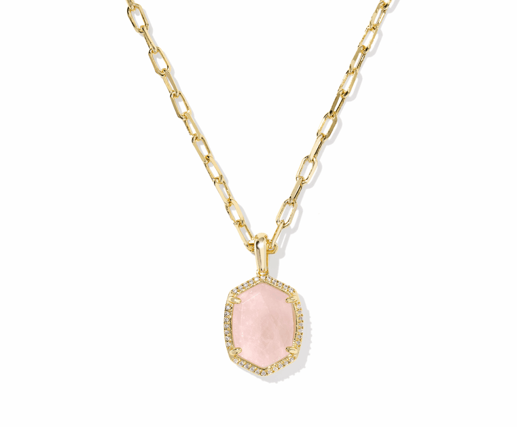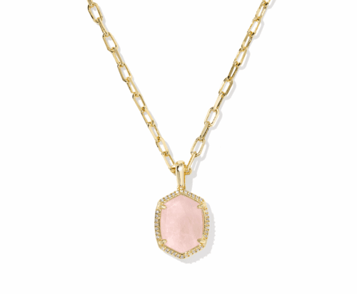 The more sparkle, the better. If you agree, the Daphne Gold Pave Frame Short Pendant Necklace is just the style for you. We adorned one of our signature stone shapes with a halo of crystals, giving you some extra glam for your everyday looks.