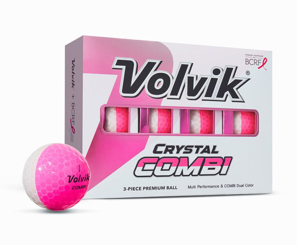 Play with striking style and tour-inspired performance with the Volvik Crystal Combi Pink BCRF Special Edition Golf Balls. Featuring dual-color alignment technology, the Crystal Combi design helps golfers visualize their target line more clearly, improving accuracy on the green and confidence on every shot. Its Crystal finish not only adds vibrant visibility but also enhances durability and feel.